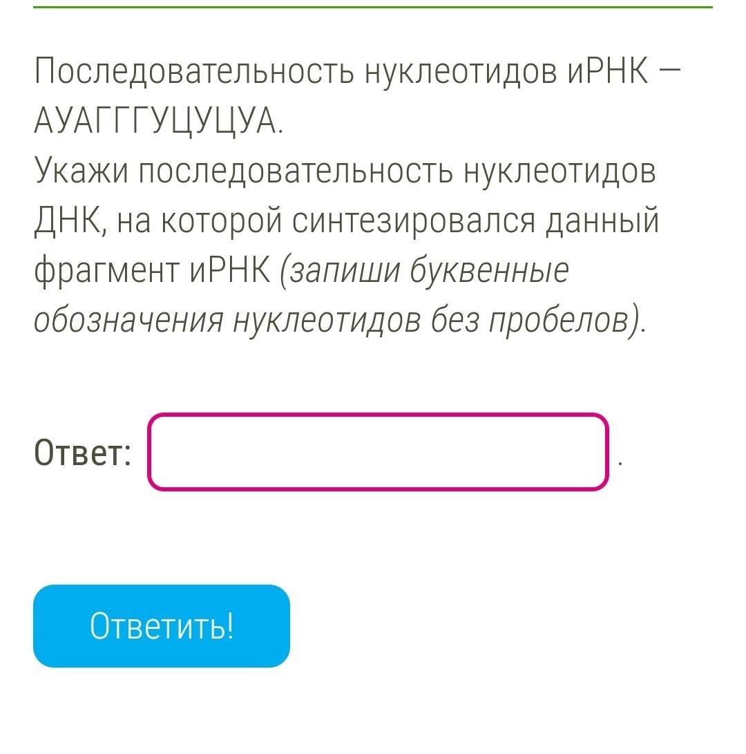 Правильный ответ :У А У Ц Ц Ц А Г А Г А У