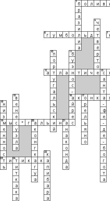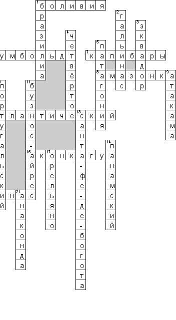 Помогите . Мне нужно сделать кросворд по природе Южной Америки.10 по вертикале и 10 по горизонтали.