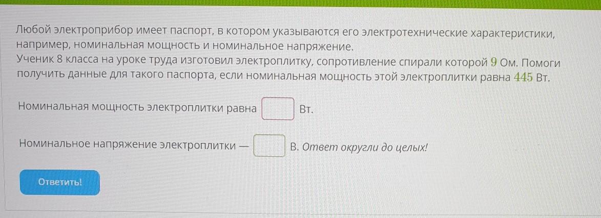 Номинальная мощность плитки дана в условии, т.е. 445 Вт