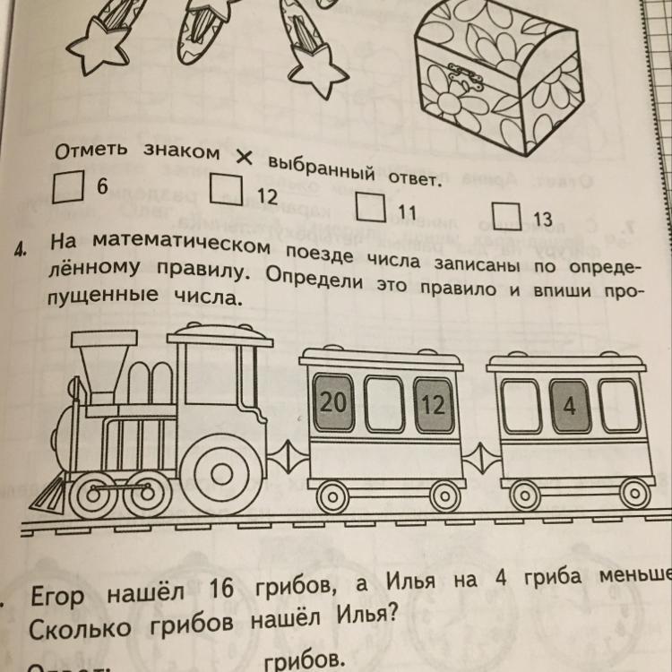 Пошаговое объяснение:20-12=8 8:2=4 20-4=16 по этому же правилу выполняем другой вагон 4-4=0 4+4=8