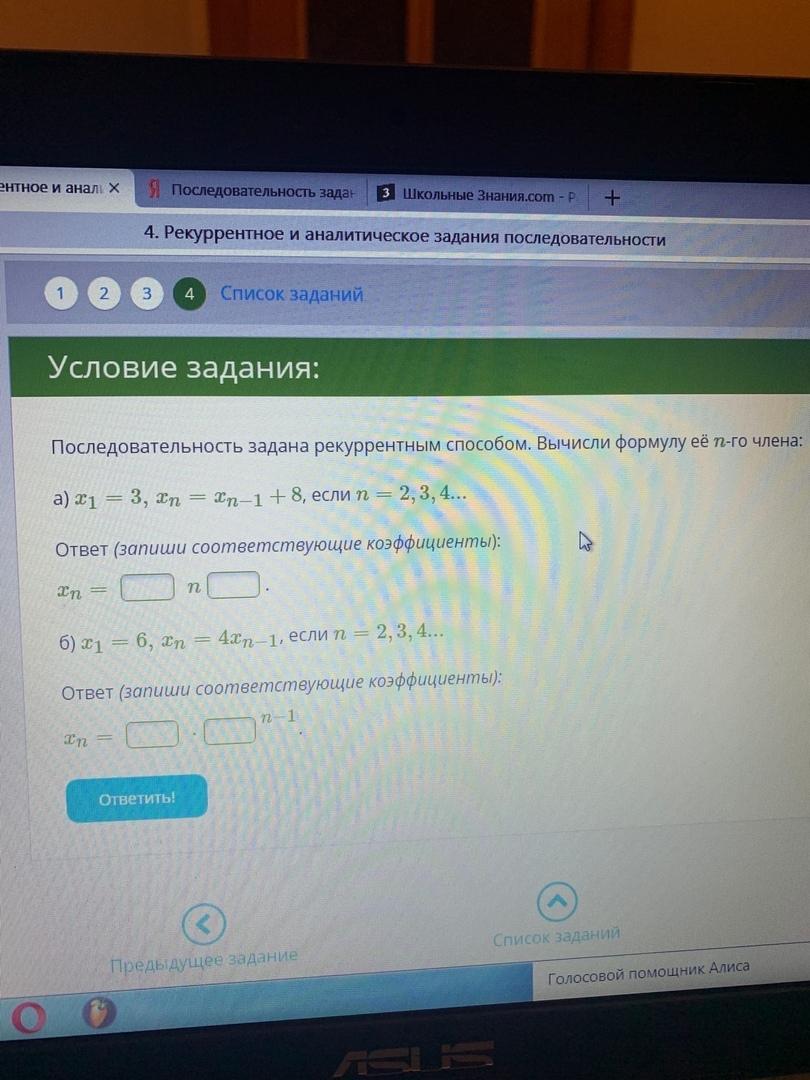а) x₁=3, xₙ=xₙ₋₁+8, если n=2,3,4...