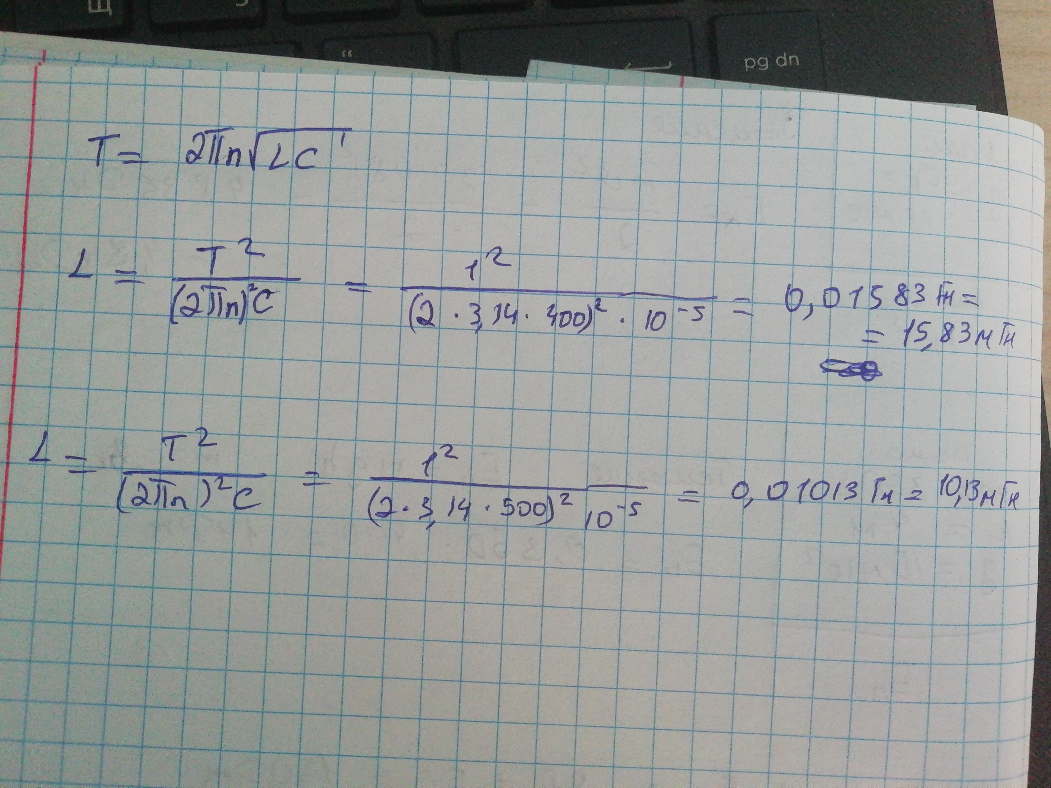 L(400) = 1/ (2п*400)²10^-5 = 0.01583 Гн = 15,83 мГн