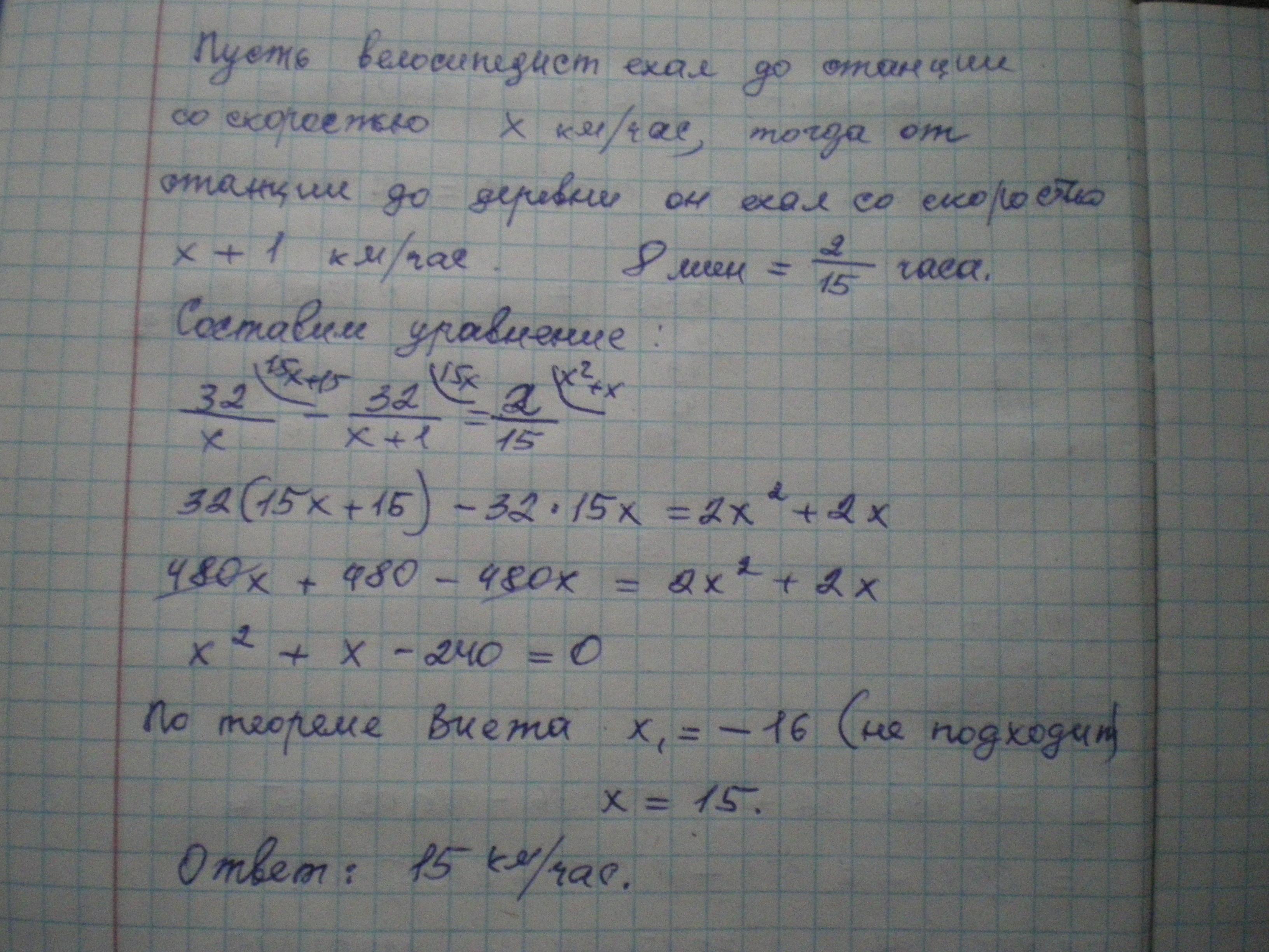 Так как скорость не может быть отрицательной, то в ответ запишем , что скорость велосипедиста от деревни до станции равна 15 км/ч .