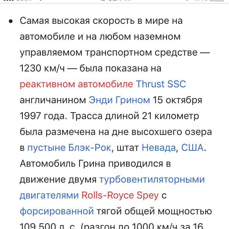 ростей»? Расскажи о рекордсменах скорости в мире машин.