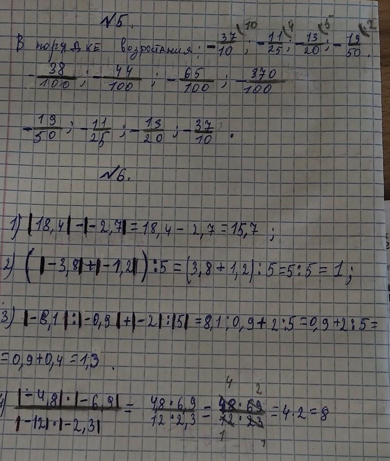 6. 1) |18,4|-|-2,7|=15,7 2) (|-3,8|+|-1,2|)/5=5/5=1
