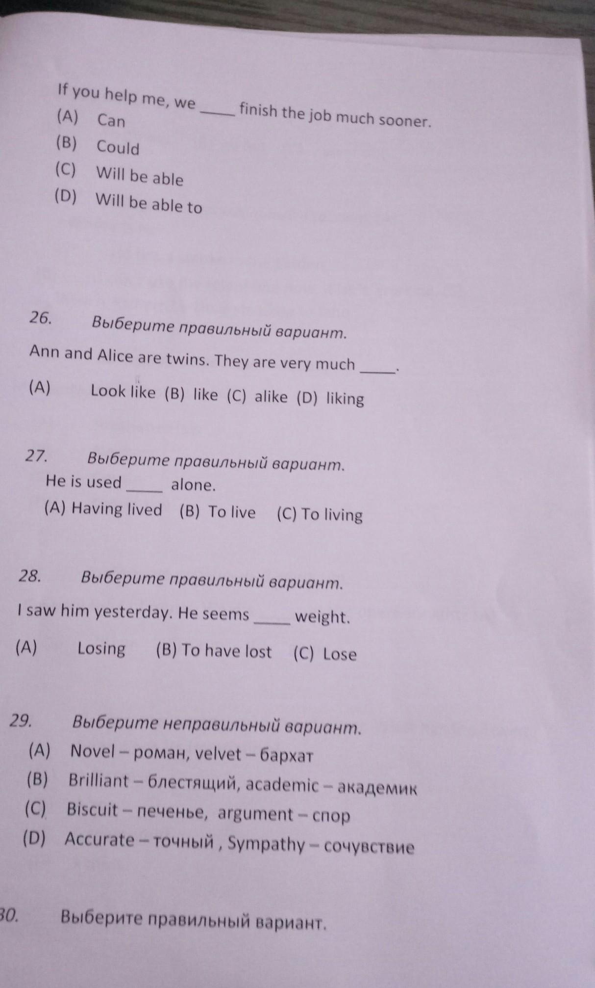 28. I saw him yesterday. He seems (B) to have lost weight.