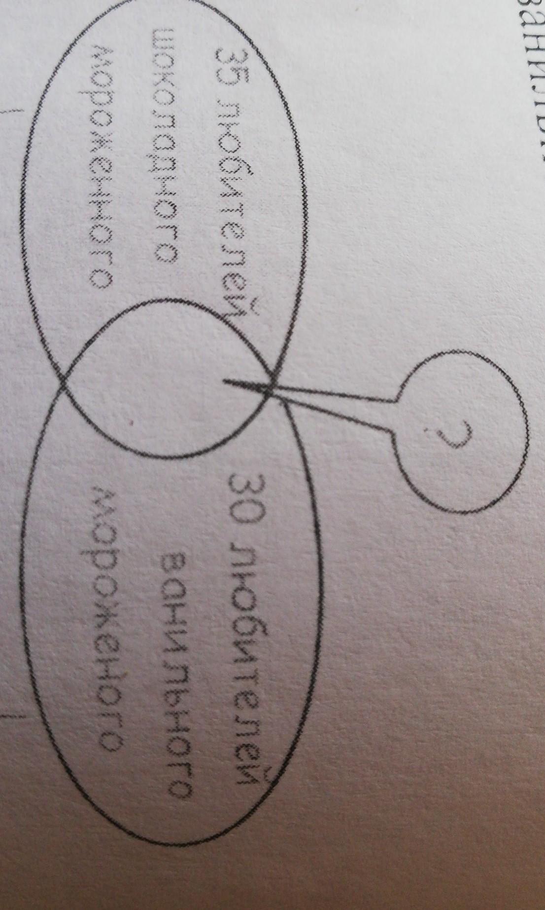 Судя по фото там 65 человек любят и шоколадное и ванильное мороженое , а если по вопросу , то 20 человек любят шоколадное и 20 любят ванильное