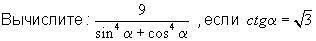 9/sin4L+cos4L=9/1+ctg4L (т.к. cos/sin=ctg) = 9/1+ (√3^2)^2=9/1+9=9/10