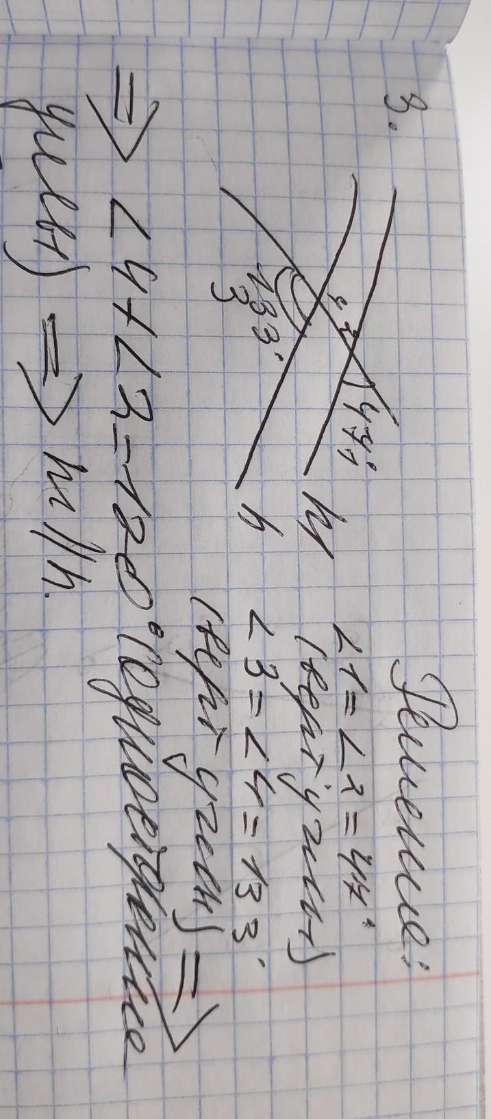 3 угол = 4 углу= 133 градуса (вертикальные углы)