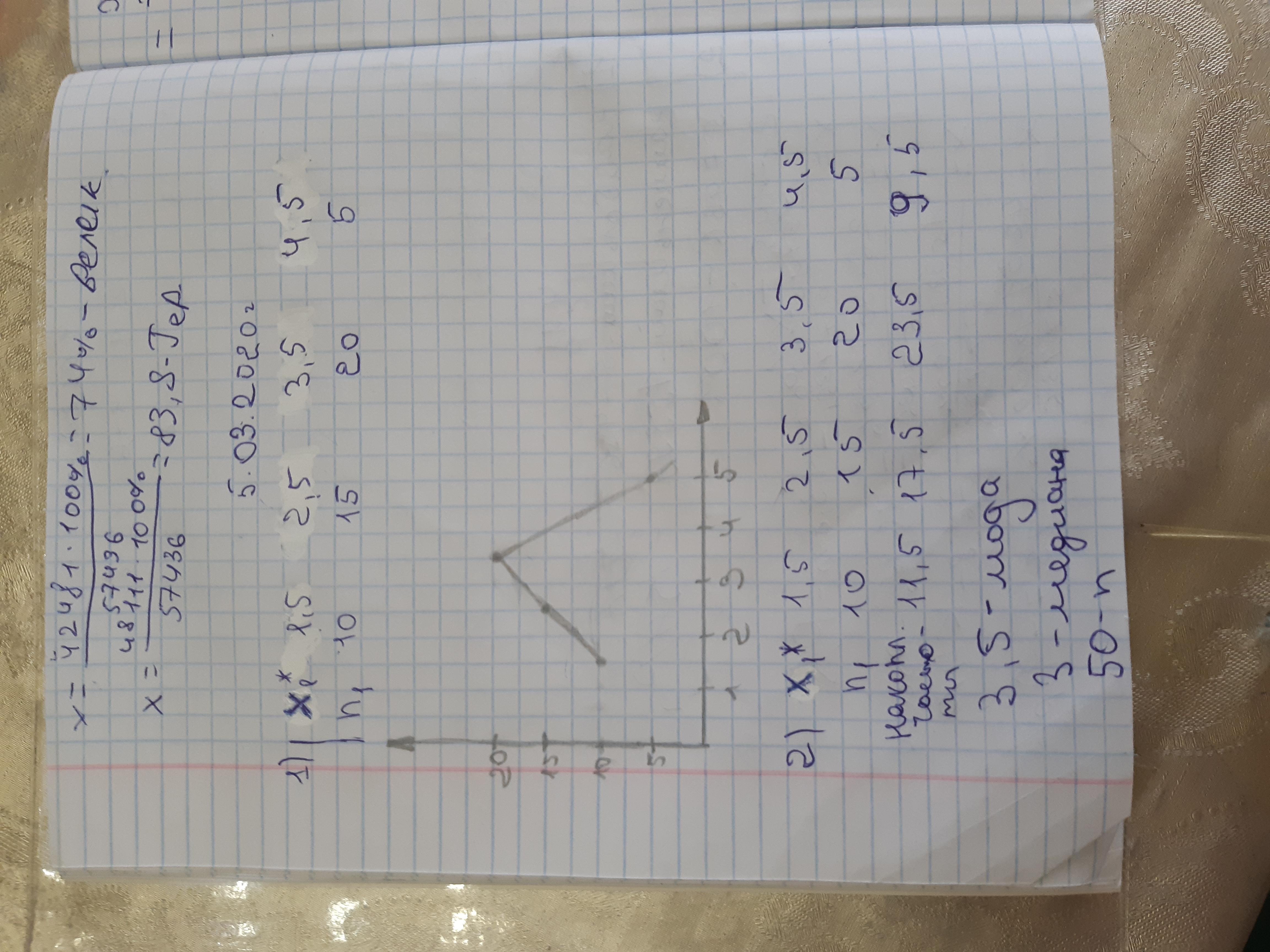 2) составьте таблицу накопленных частот и найдите моду, медиану, среднее значение выборки.