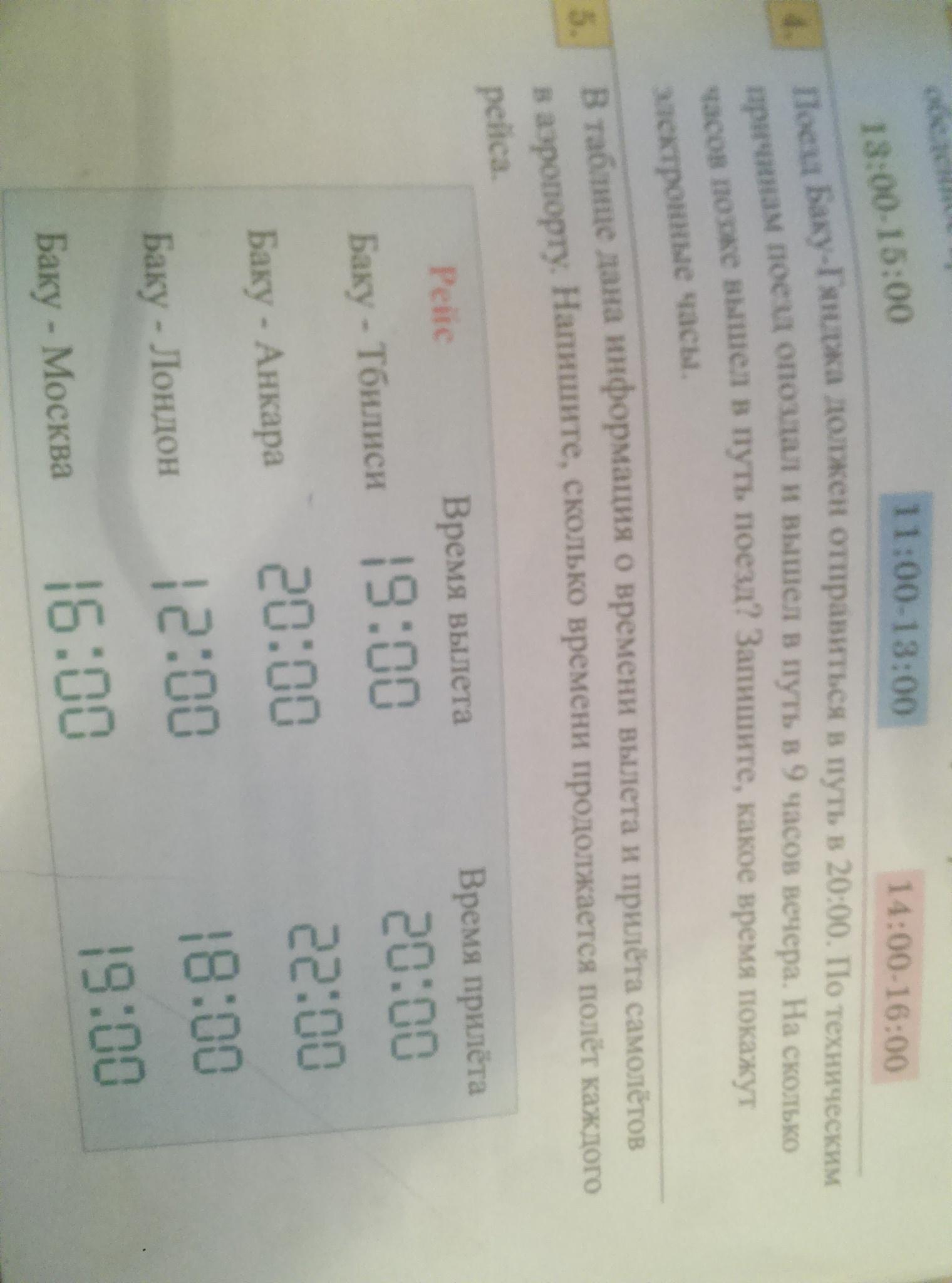 5)Баку - Тбилиси 20.00-19.00=1