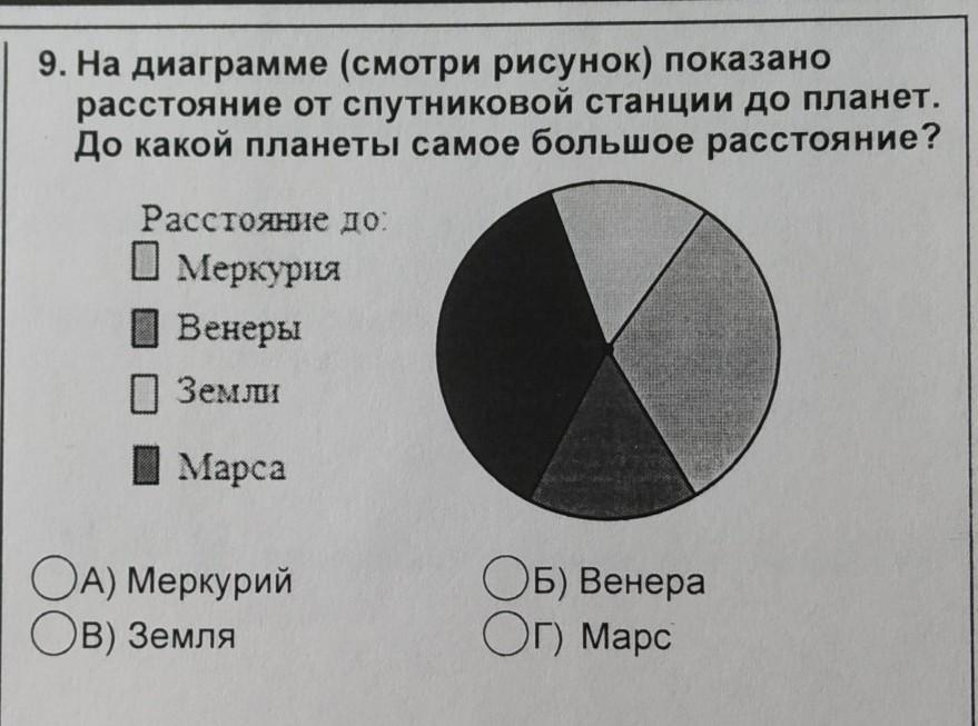 Судя по данным, самый тёмный цвет у Марса, => до Марса самое большое расстояние