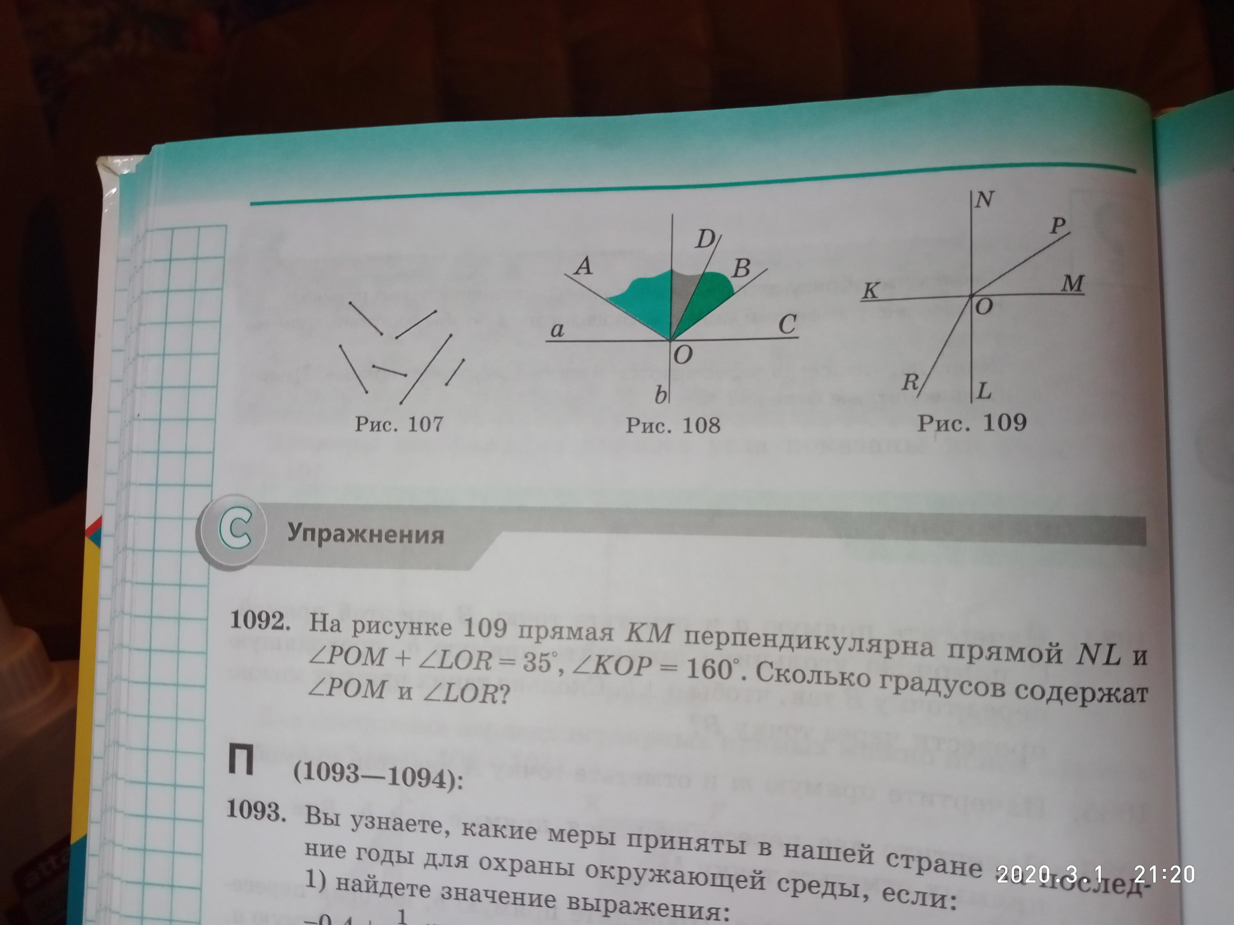2) Так как мы знаем сумму углов ∠POM и ∠LOR = 35°, то ∠LOR = 35° - ∠POM ⇒ ∠LOR = 35° - 20° = 15°