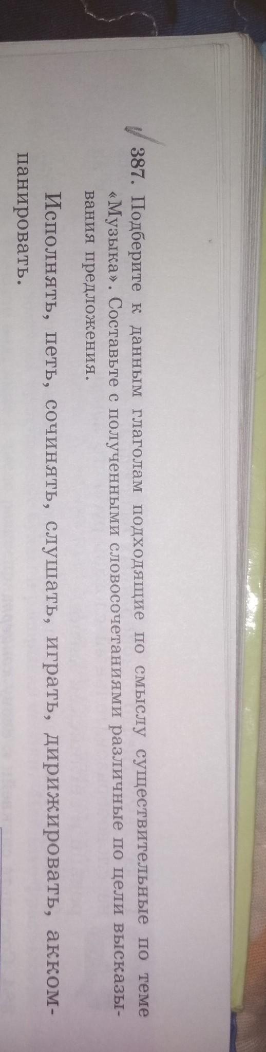 Словосочетания: исполнять романс, петь песню, слушать музыку, сочинять стихи, играть на рояле, дирижировать оркестром, аккомпонировать ансамблю.