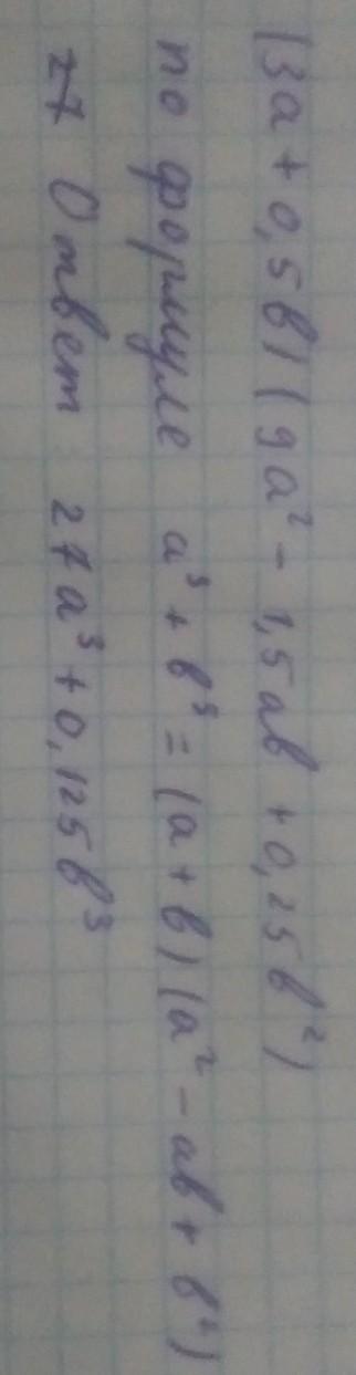 1) (3a+0,5b)(9a^2-1,5ab+0,25b^2)