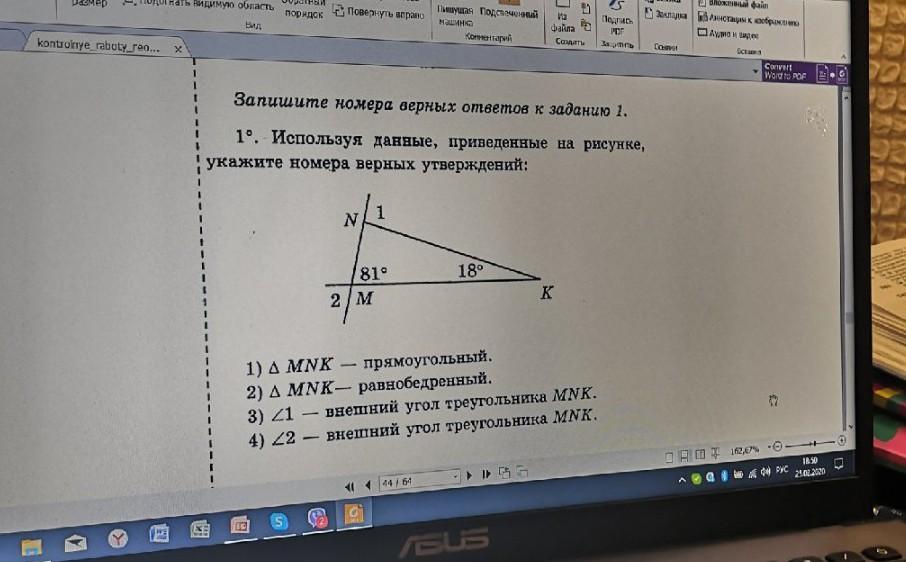 3)тк по правилу угол 1 смежный с углом КNM, а значит он является внешним углом этого треугольника.