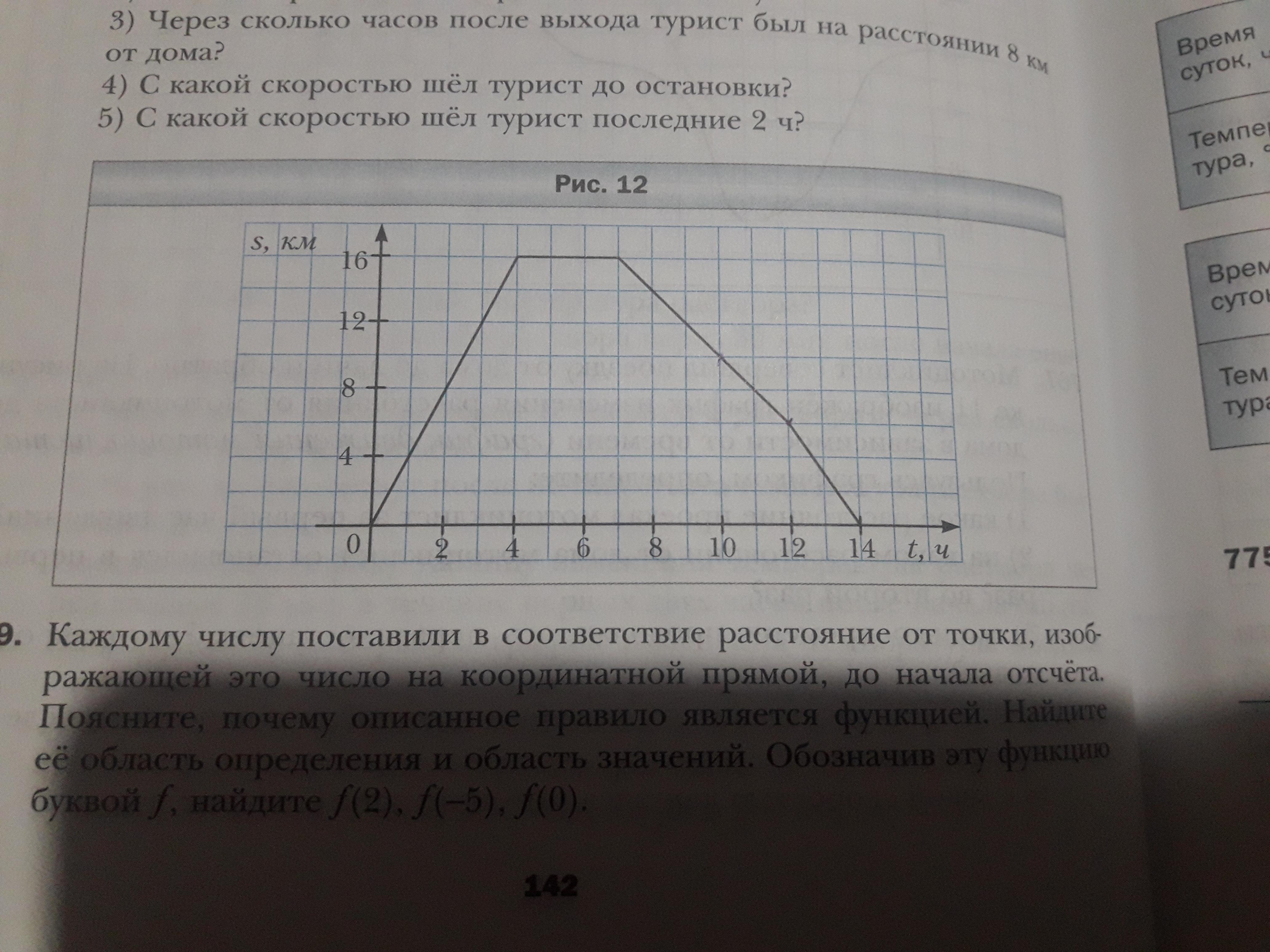 3. Через сколько часов после выхода турист был на расстоянии 8 км от дома?