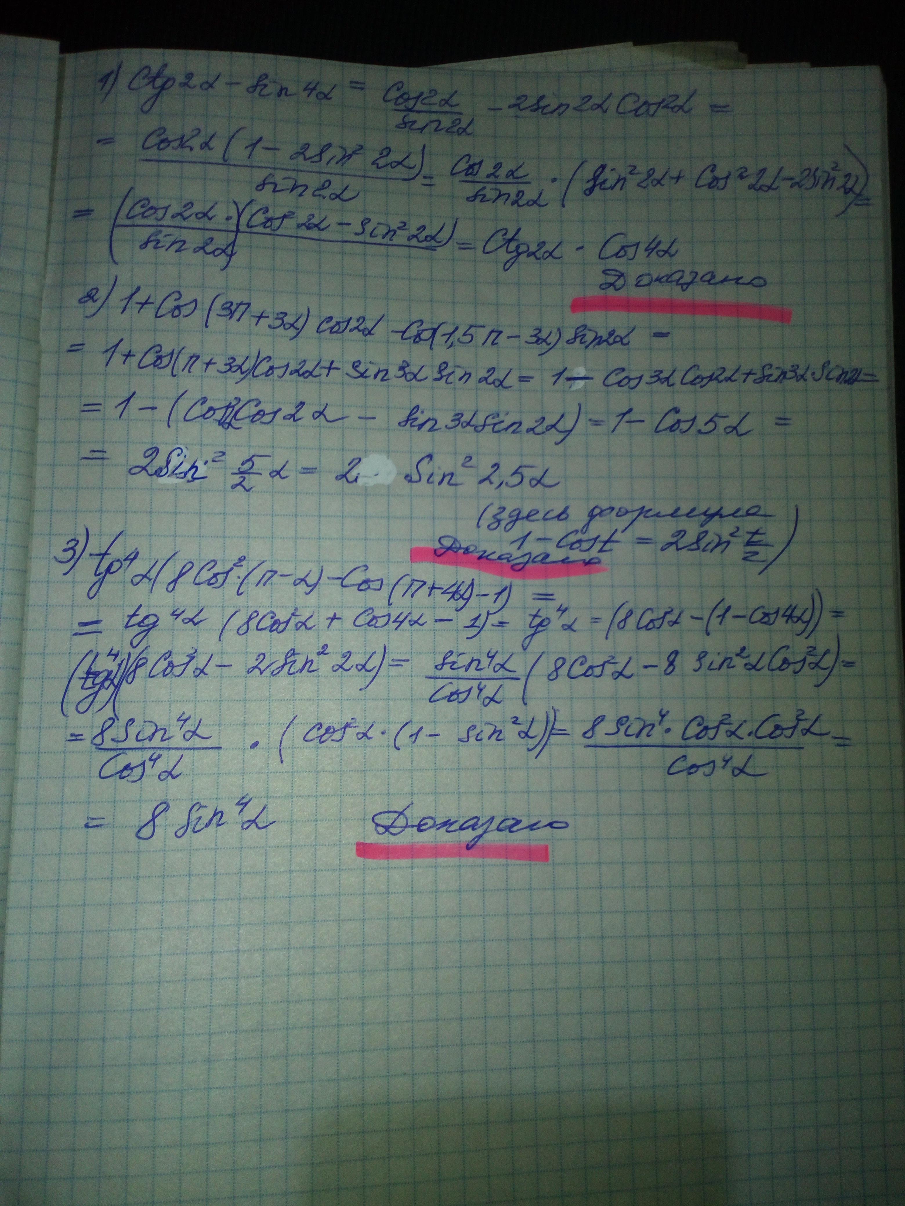 1)ctg2a-sin4a=cos4a*ctg2a