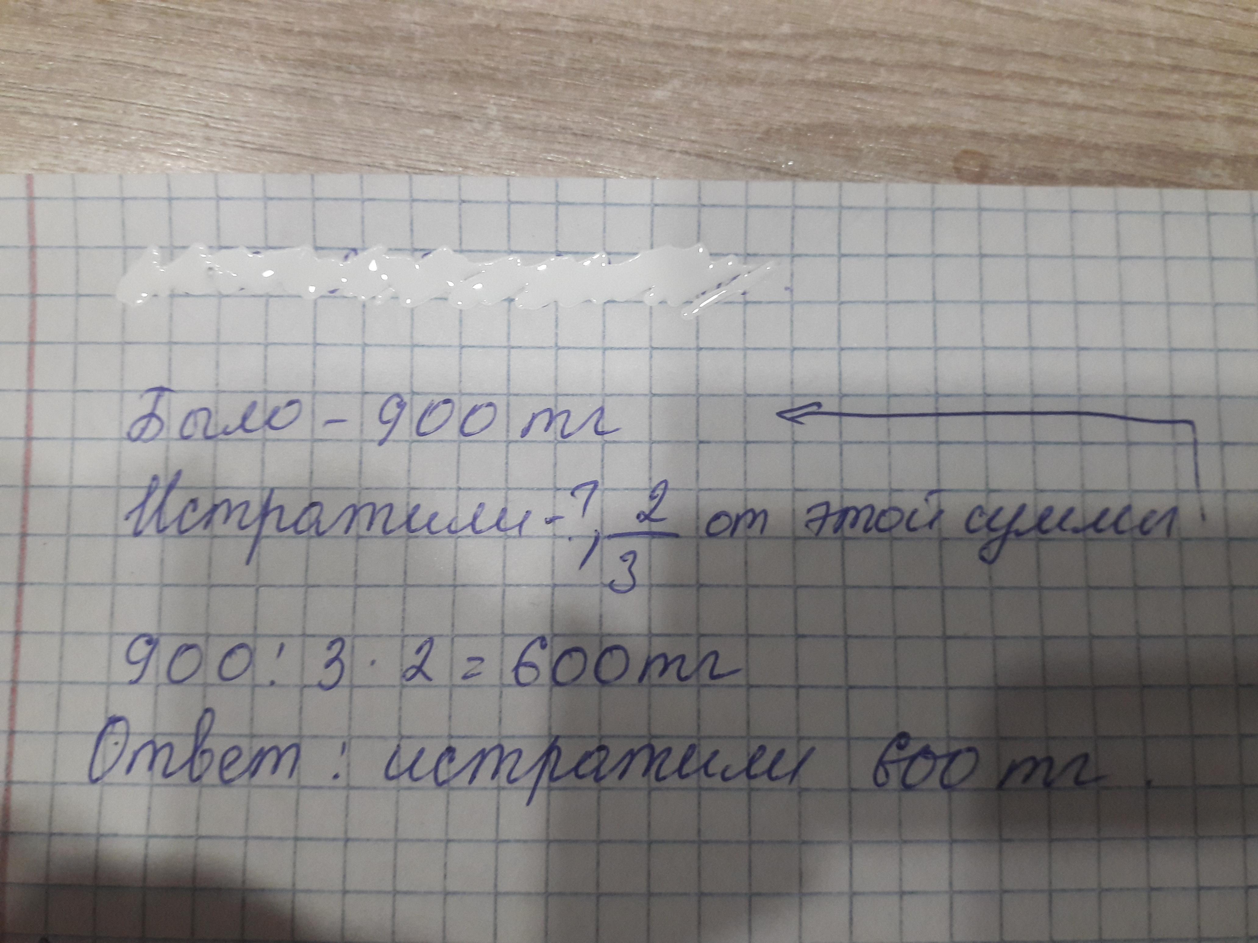 Первоначальная сумма денег составляет 900 тенге. За покупку заплатили 2/3 этой суммы. Сколько заплатили за товар?