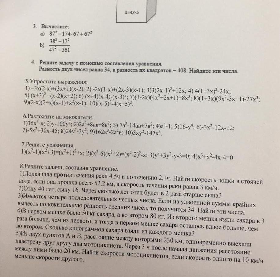 В 3 задаче ответ: 6 8 10 12. Если составить уравнение вида 2(a+d) - (c - d) = 34, где (a,b,c,d четные последовательные числа) можно найти наши корни методом подбора.