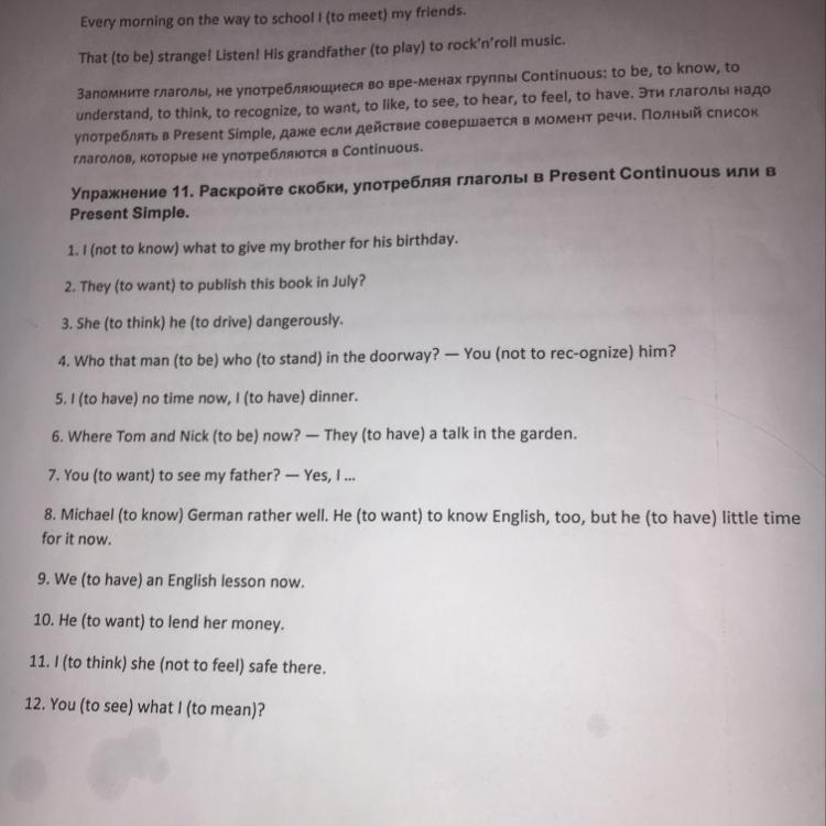 раскройте скобки, употребляя глаголы в Present Simple или Past Continuous