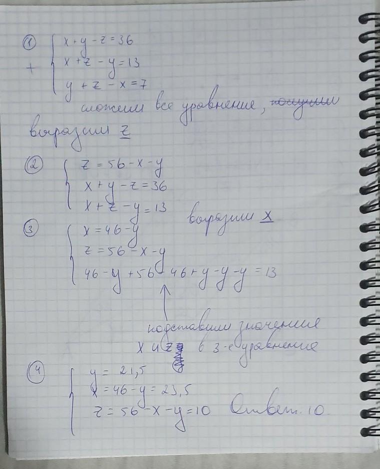 Z=7+x-y=13+y-x=x+y-36