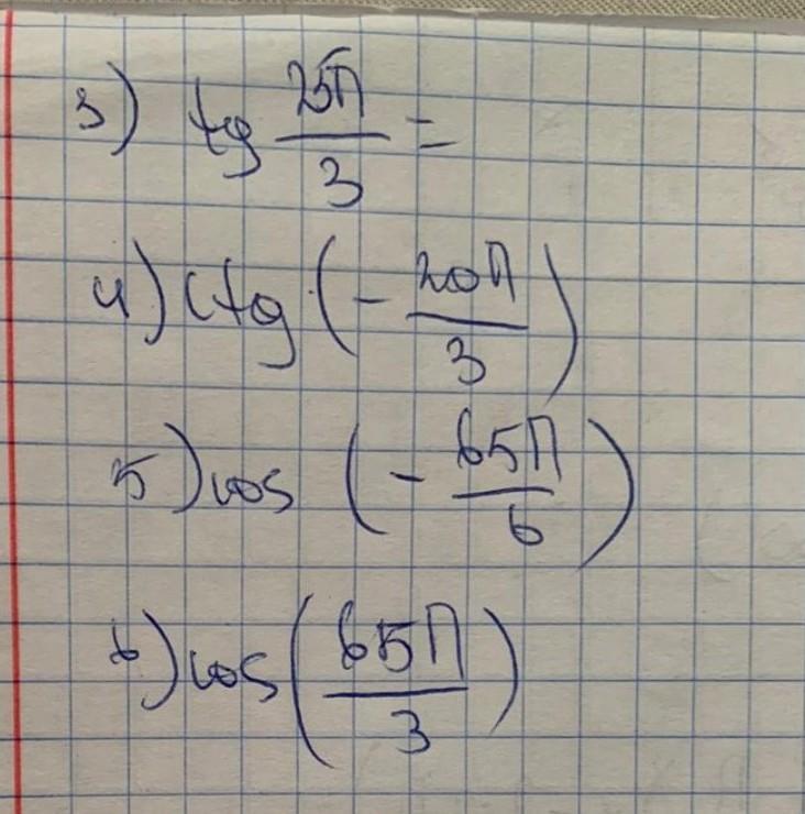 cos (- 65P6)= cos(65P6)=cos(5P6 + 2*5P)= cos (5P6)= корень из 32