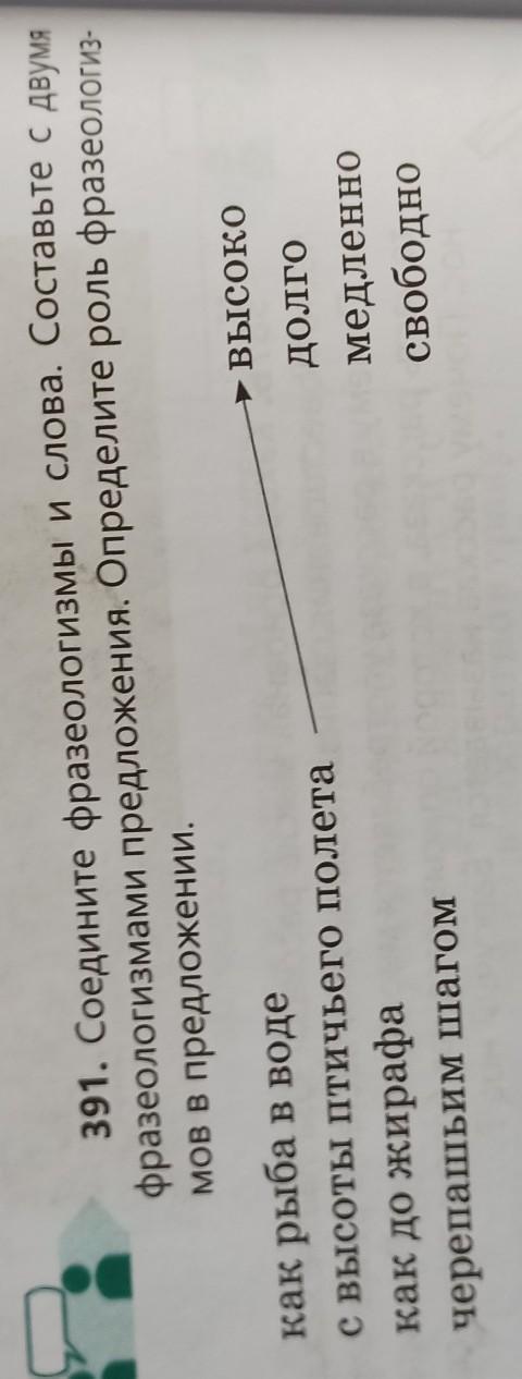 391. Соедините фразеологизмы и слова Составьте с двумя