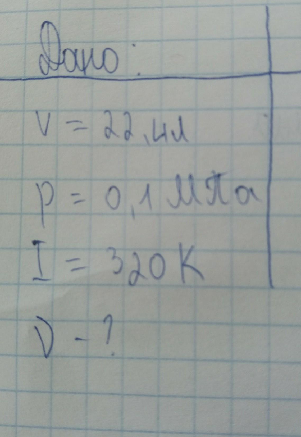 ν = p·V / (R·T) = 0,1·10⁶·22,4·10⁻³ / (8,31·320) ≈ 0,84 моль
