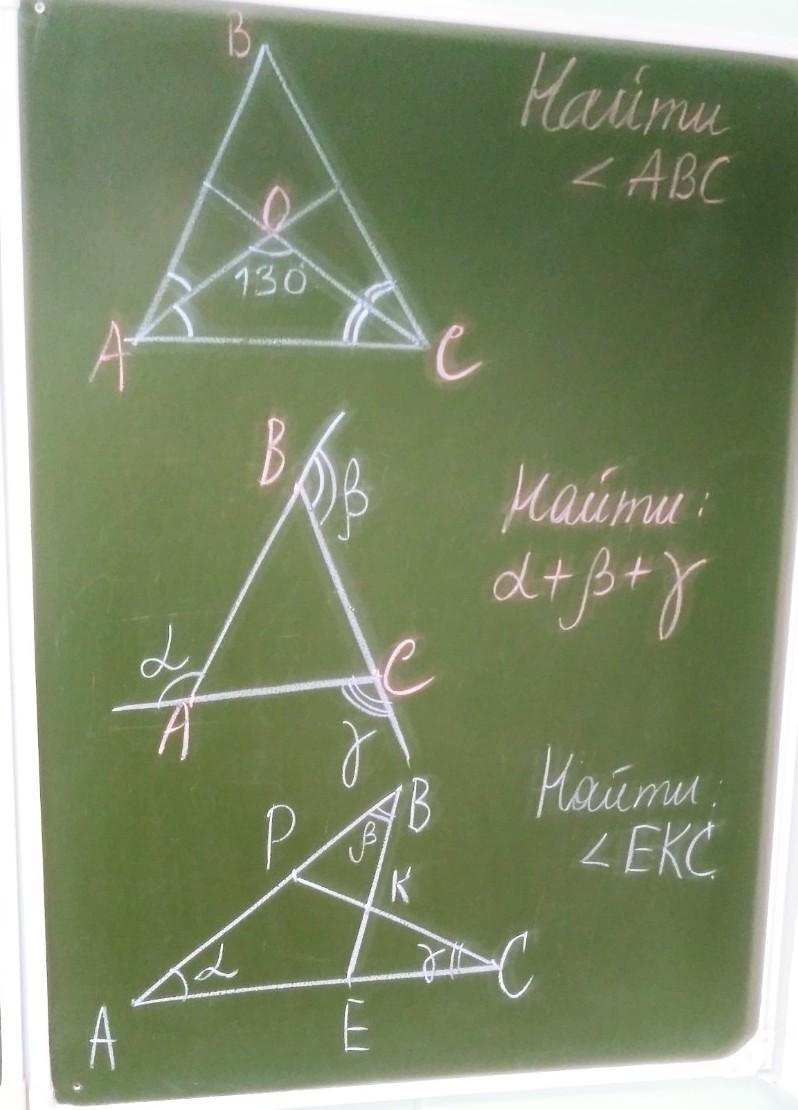 2)<бета=<A+<C, <альфа=<B+<C, <гамма=<A+<B, (внешний угол равен сумме двух внутренних, не смежных с ним), cложим эти углы и получим: