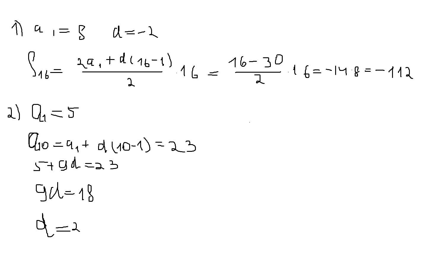 1)Найдите сумму шестнадцати первых членов арифметической прогрессии (Bn):8;4... 2)В арифметической прогрессии (Cn):с10=23 с1=5 Найдите разность этой прогрессии