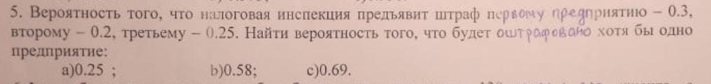 Вероятность того, что будет оштрафовано хотя бы одно предприятие: