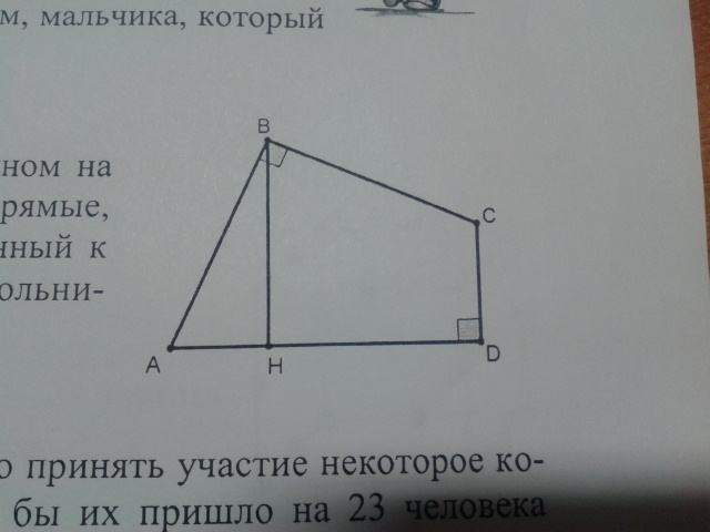 В четырёхугольнике ABCD, изображенном на рисунке, углы при вершинах B и D-прямые, AB=BC, а перпендикуляр BH, проведённый к AD, равен 4.Найдите площадь четырёх.угольника