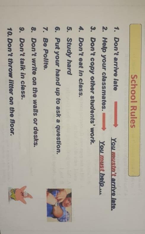 8. You mustn't write on the walls or desks.