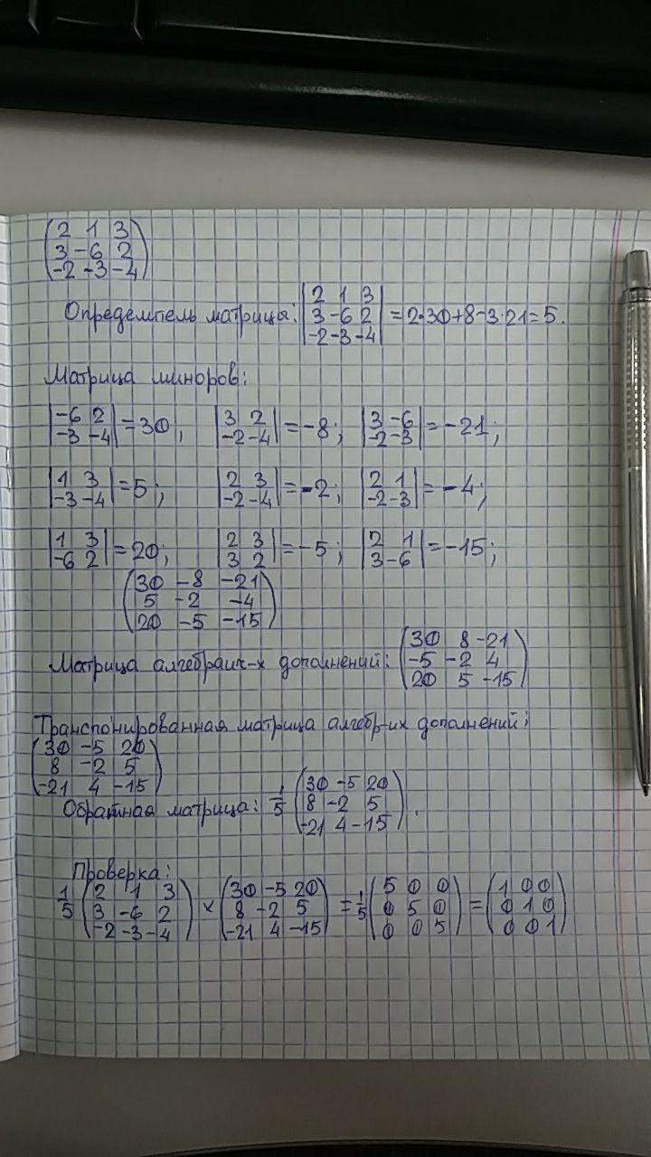 Помогите пожалуйста! Дана невырожденная матрица A. Найти обратную матрицу A-1 и пользуясь правилом умножения матриц, показать, что A*A-1= E, где E – единичная матрица. А