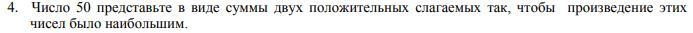 Число 50 представьте в виде суммы двух положительных слогаемых так, чтобы произведение этих чисел было наибольшим