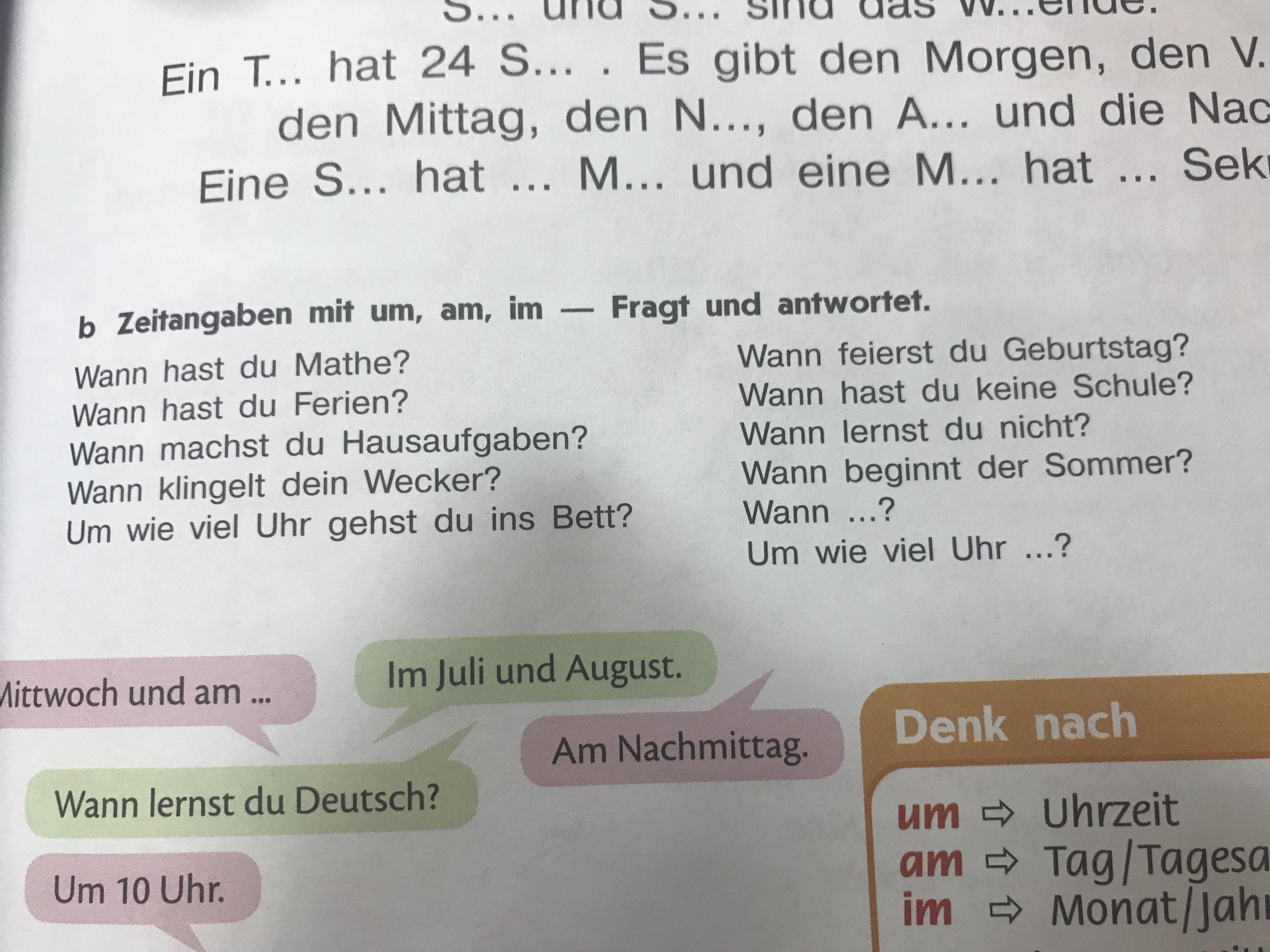 10. Wann hast du Deutsch? - Deutsch habe ich am Dienstag und am Donnerstag.