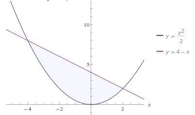 S= intlimits^2_b {4-x- frac{x^2}{2} } , dx= frac{x^3}{6}- frac{x^2}{2}+4 = 18,b=-4