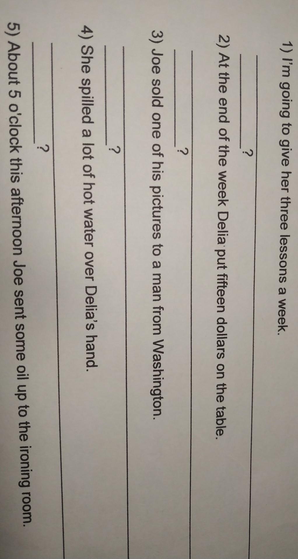 5. Some oil up was sent to the ironing room about 5 o'clock this afternoon by joe