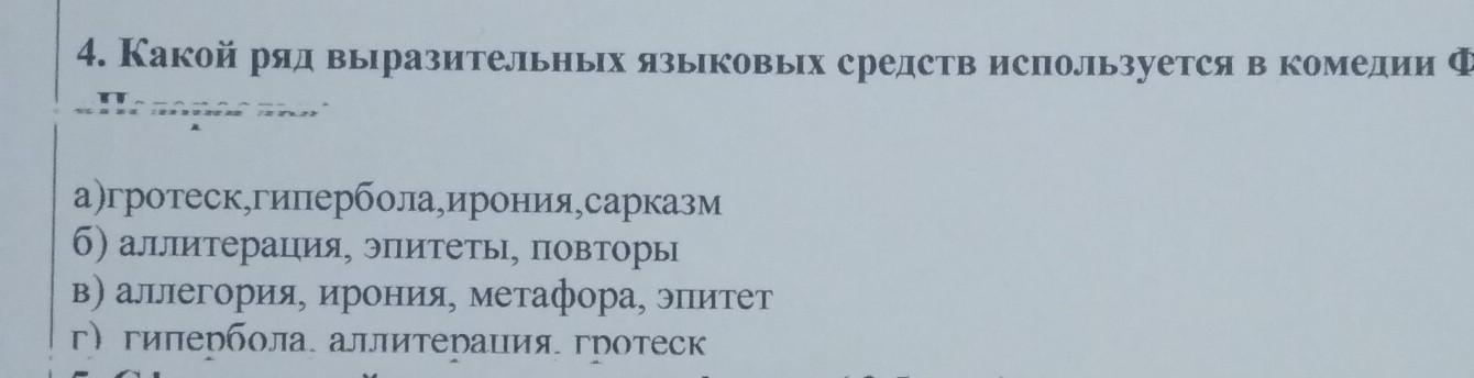 4. Какой ряд выразительных языковых средств используется в комедии Фонвизина