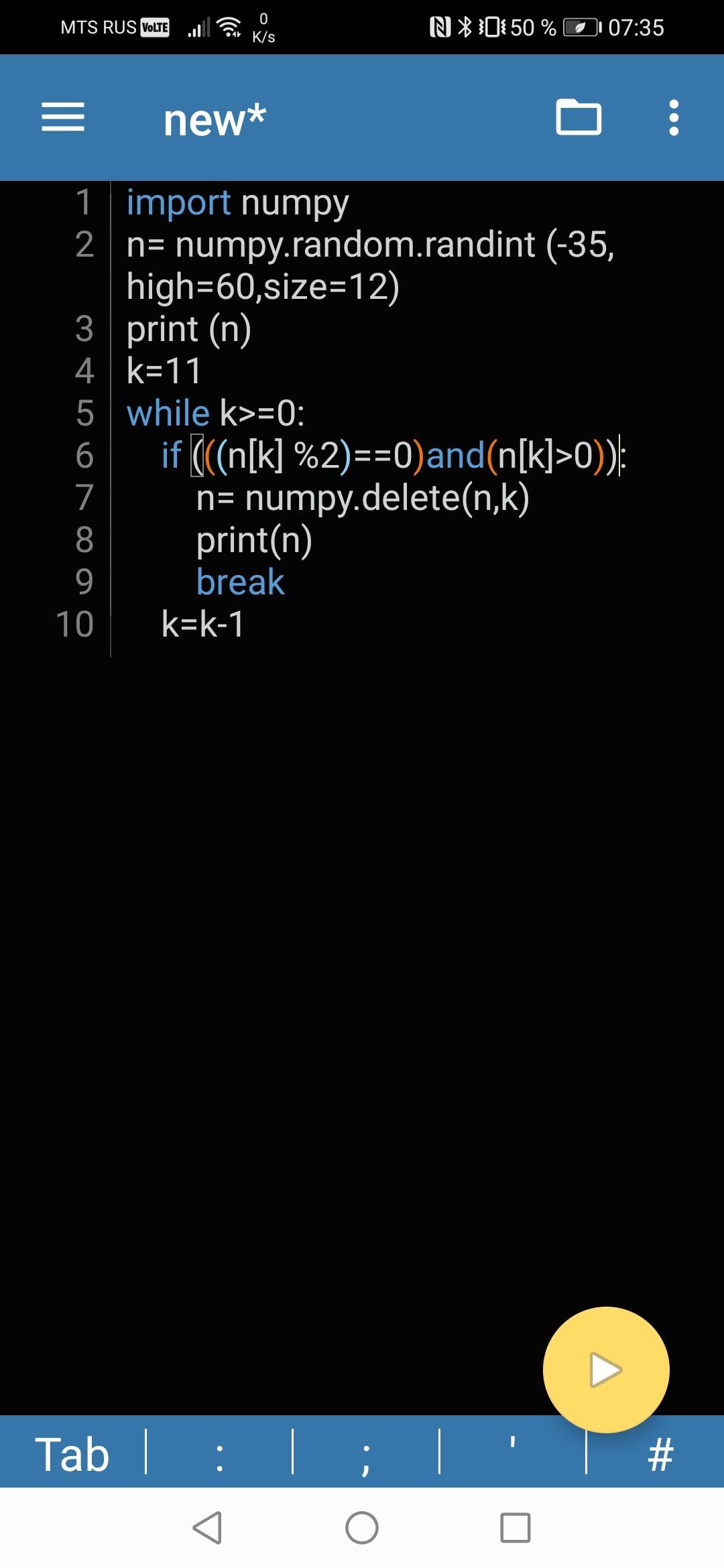 составить программу удаления из массива последнего положительного четного элемента. массив заполнить случайным образом в диапазоне -35;60, размерности массива 12 элементов