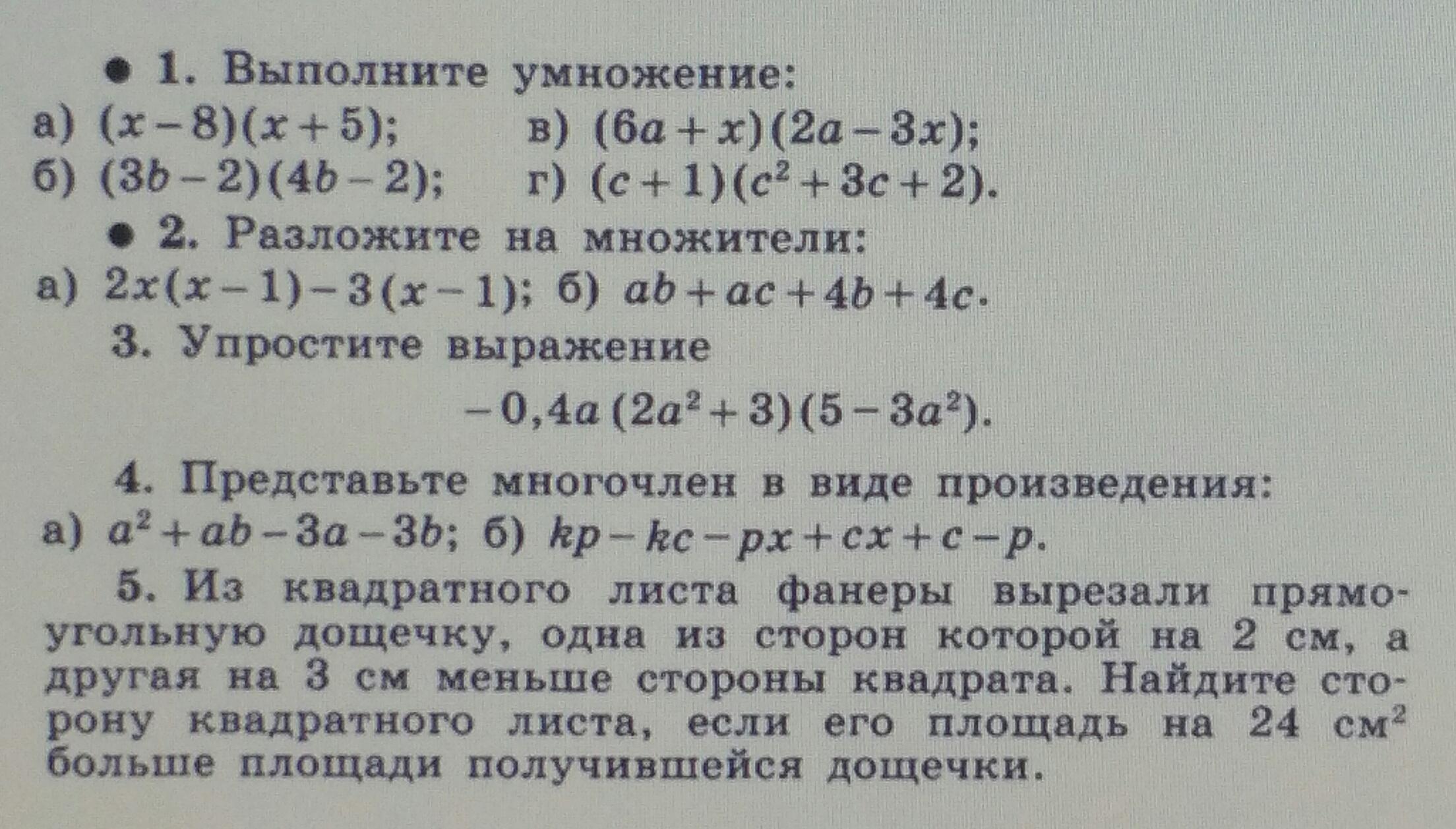 1) (х-8)(х+5)=х^2+5х-8×-40=×^2-3х-40