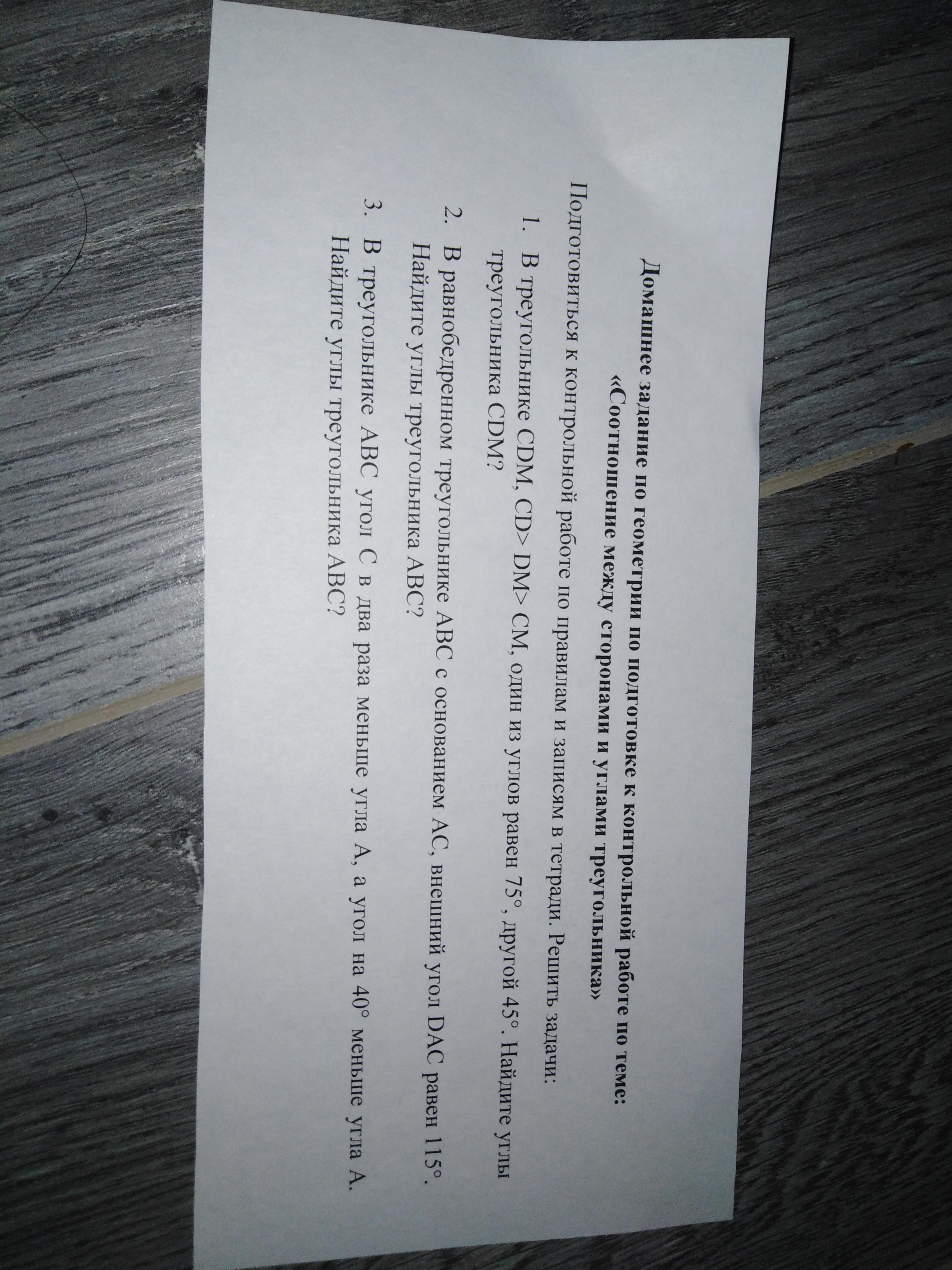 1. сумма углов в теугольнике= 180. если один из них 75, второй 45, то третий будет 180-75-45=60. Тоесть угол СД=75, угол ДМ=60, А угол СМ=45