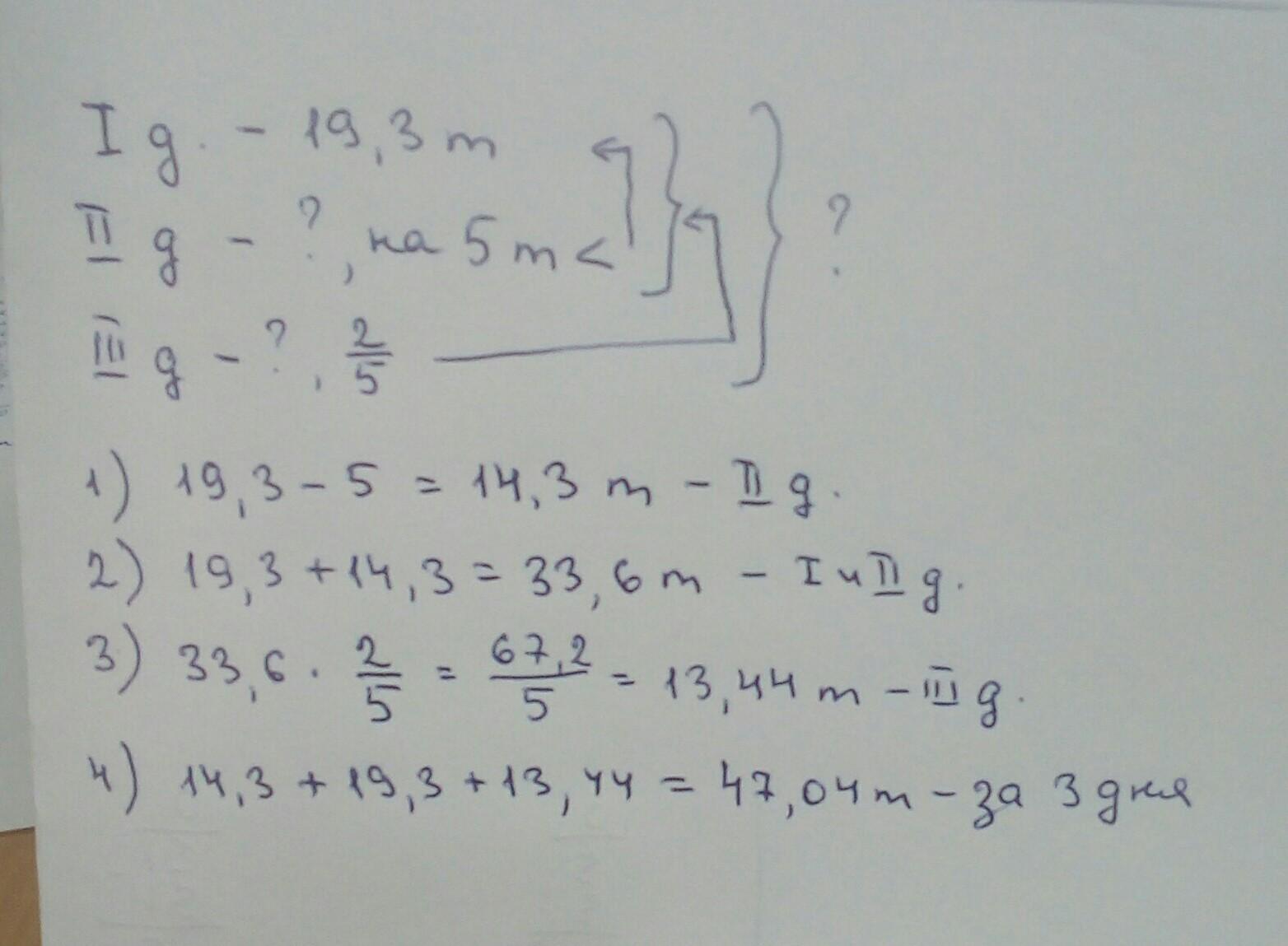 задача на склад в первый день привезли 19,3 тонн картофеля во второй день на 5 тонн меньше чем в первый а в третий 2/5 от количества картофеля привезного в первый и второй день вместе сколкьо тонн картофеля завезли на склад за три дня