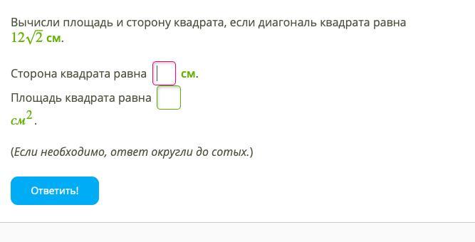 Отсюда: a=d/√2=12√2/√2=12 см.