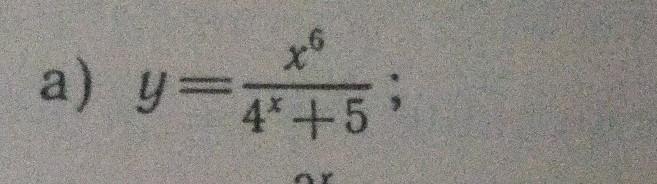 y'=(x⁶/(4ˣ+5)'=((x⁶)'*(4ˣ+5)-x⁶*(4ˣ+5)')/(4ˣ+5)²=