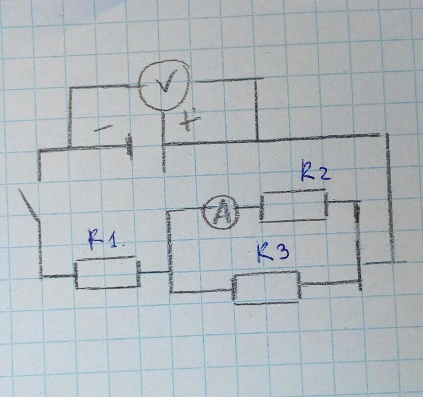 Чему равно общее сопротивление цепи,сила тока в первом и третьем резистрах, а также напряжение в 1,2 и 3? (В ответе записать формулы)