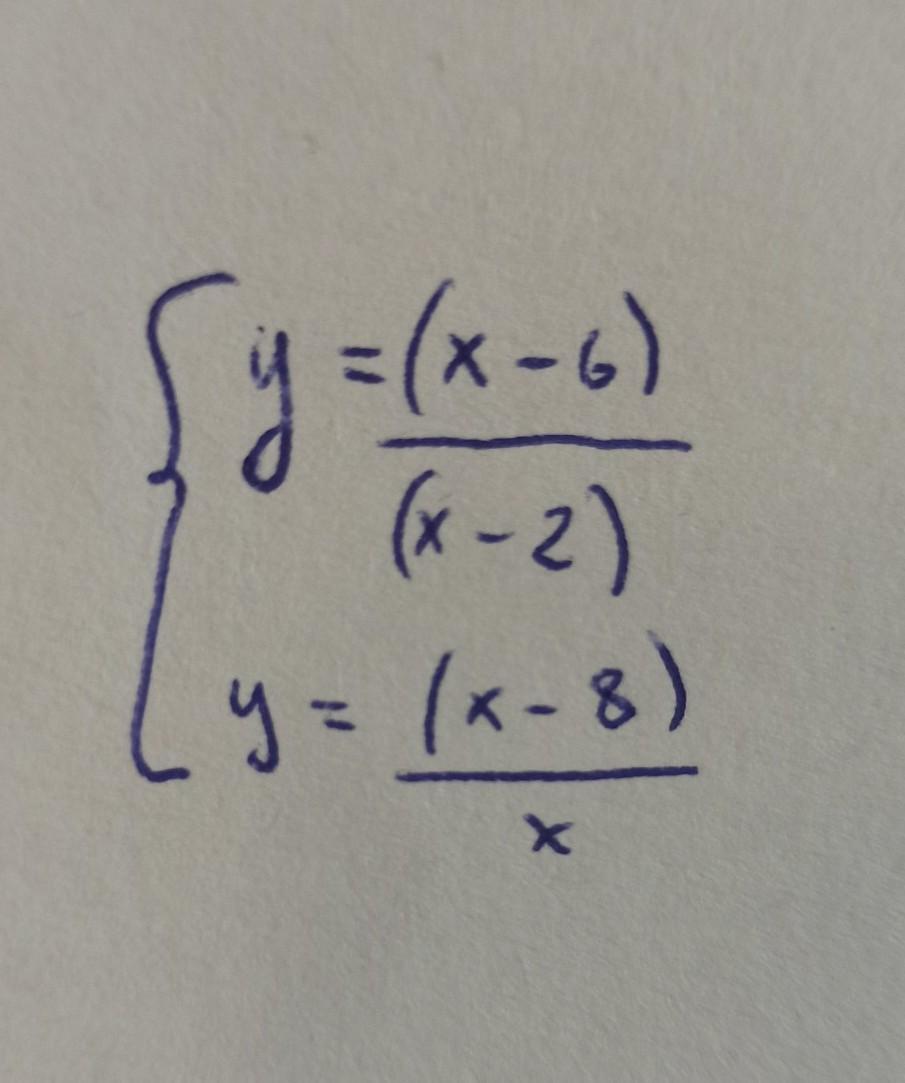 (х - 6)/(x - 2) = (x - 8)/x, теперь избавимся от дробного выражения, общий знаменатель х(х - 2), надписываем над числителями дополнительные множители, получаем: