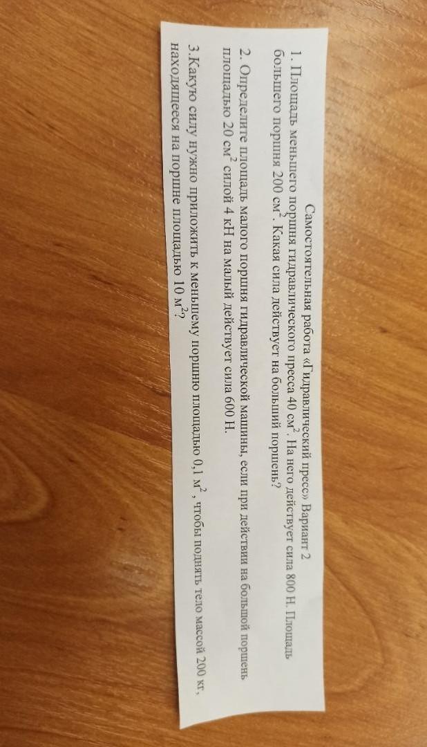 Площадь меньшего поршня гидравлического пресса 40 см^2. На него действует сила 800 Н. Площадь большего поршня 200 см^2. Какая сила действует на больший поршень?