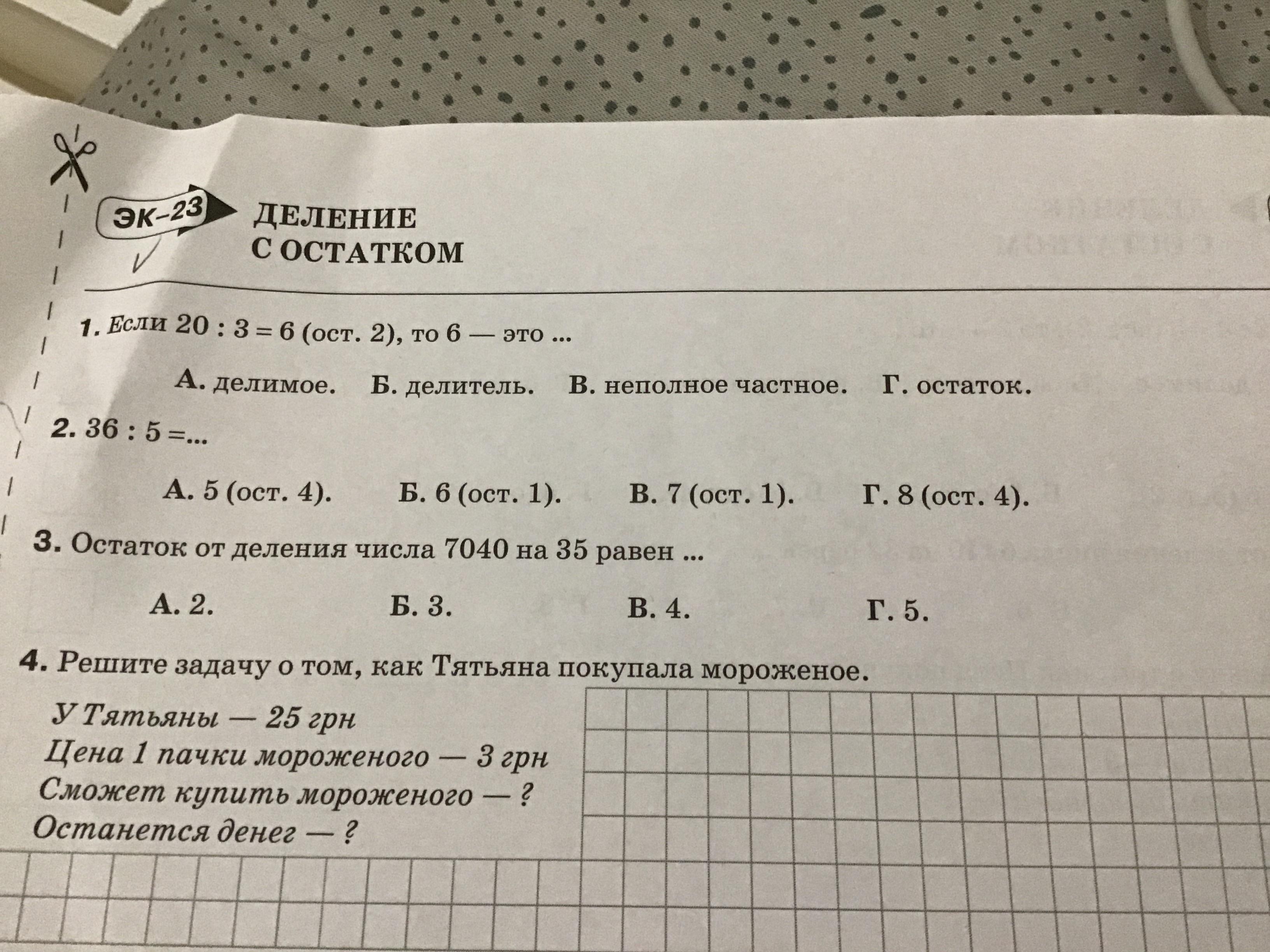 1.В 2.В 3.Г 4.1)25:3=8 (ост.1)